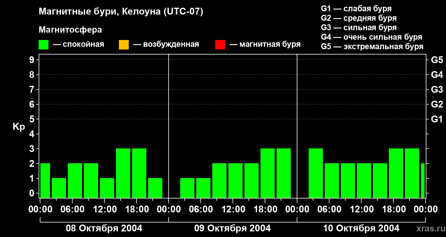Магнитные бури в Келоуне — 10 октября 2004 года