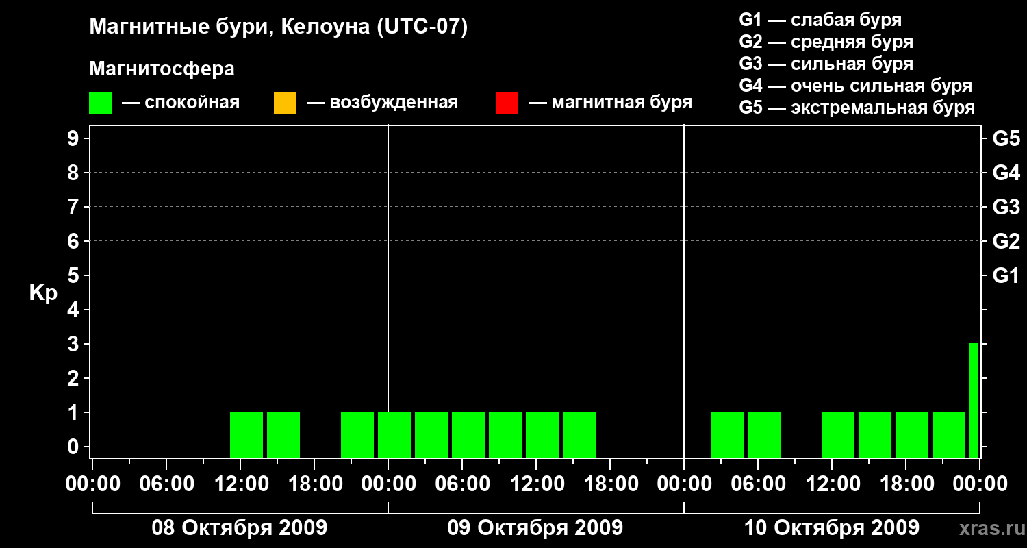 Магнитные бури в Келоуне — 10 октября 2009 года