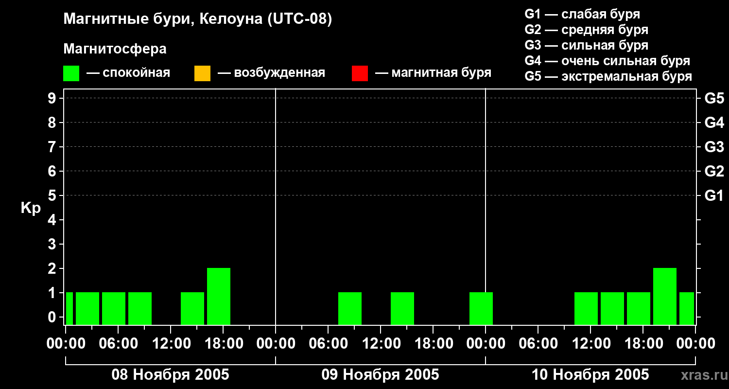 Магнитные бури в Келоуне — 10 ноября 2005 года