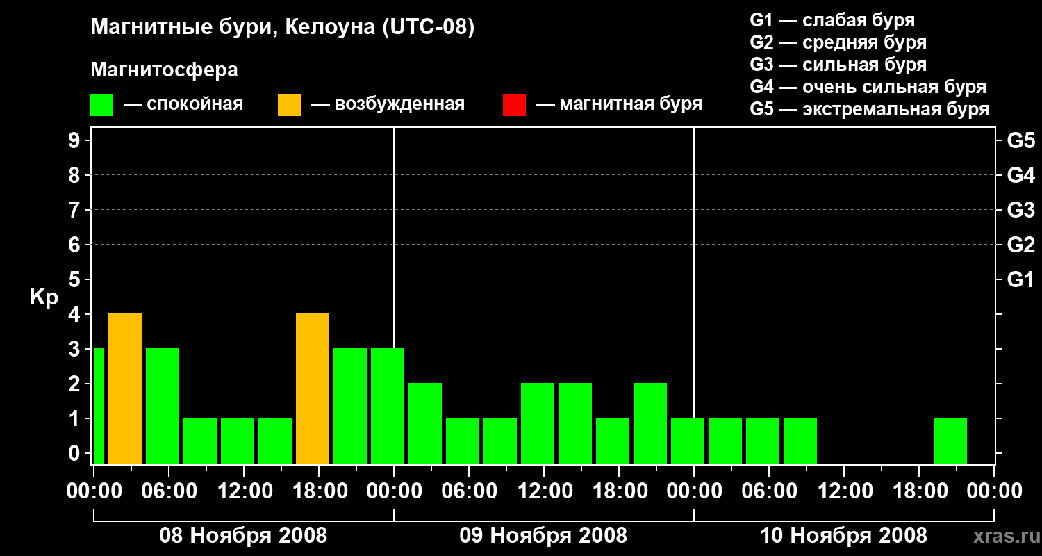Магнитные бури в Келоуне 10 ноября 2008 года