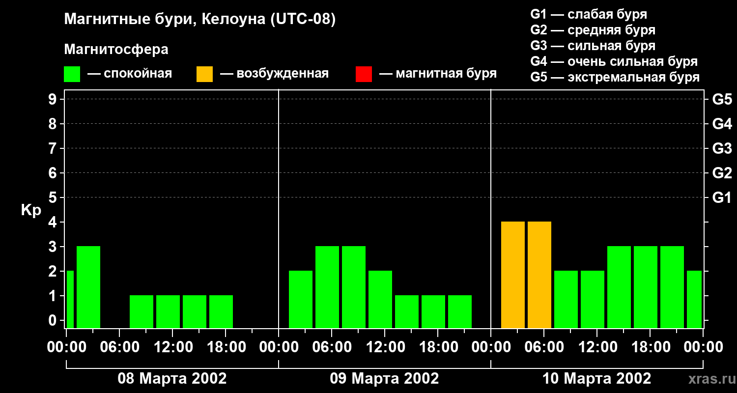 Магнитные бури в Келоуне — 10 марта 2002 года