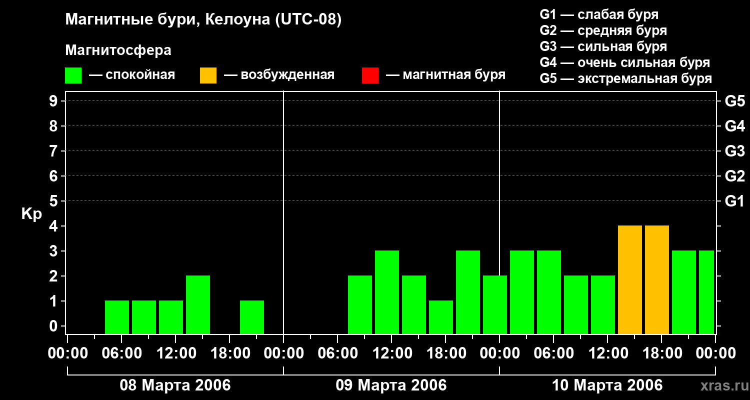Магнитные бури в Келоуне — 10 марта 2006 года