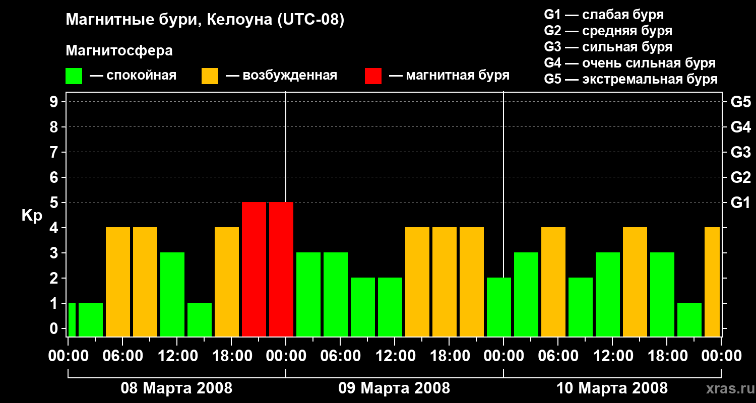 Магнитные бури в Келоуне — 10 марта 2008 года