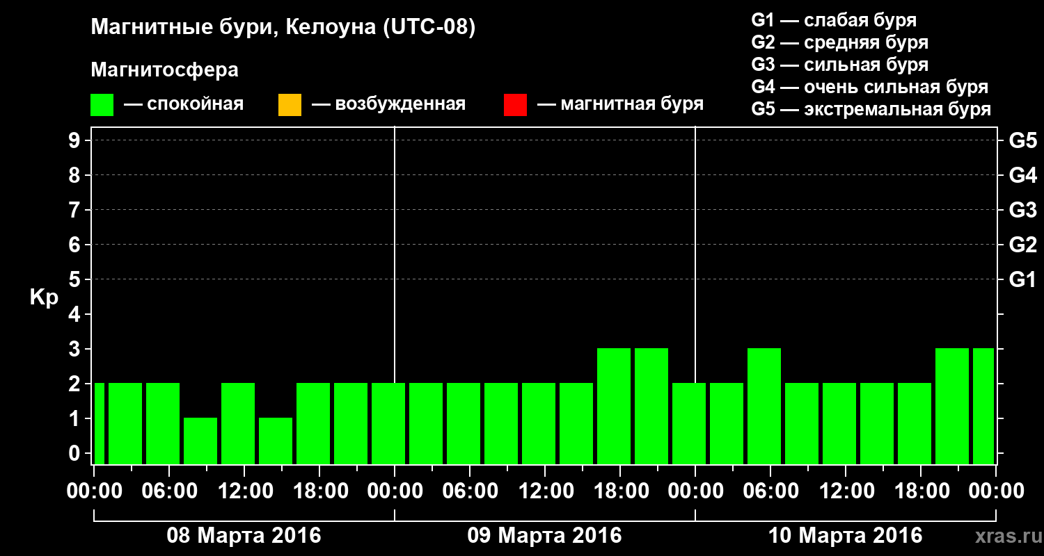 Магнитные бури в Келоуне — 10 марта 2016 года