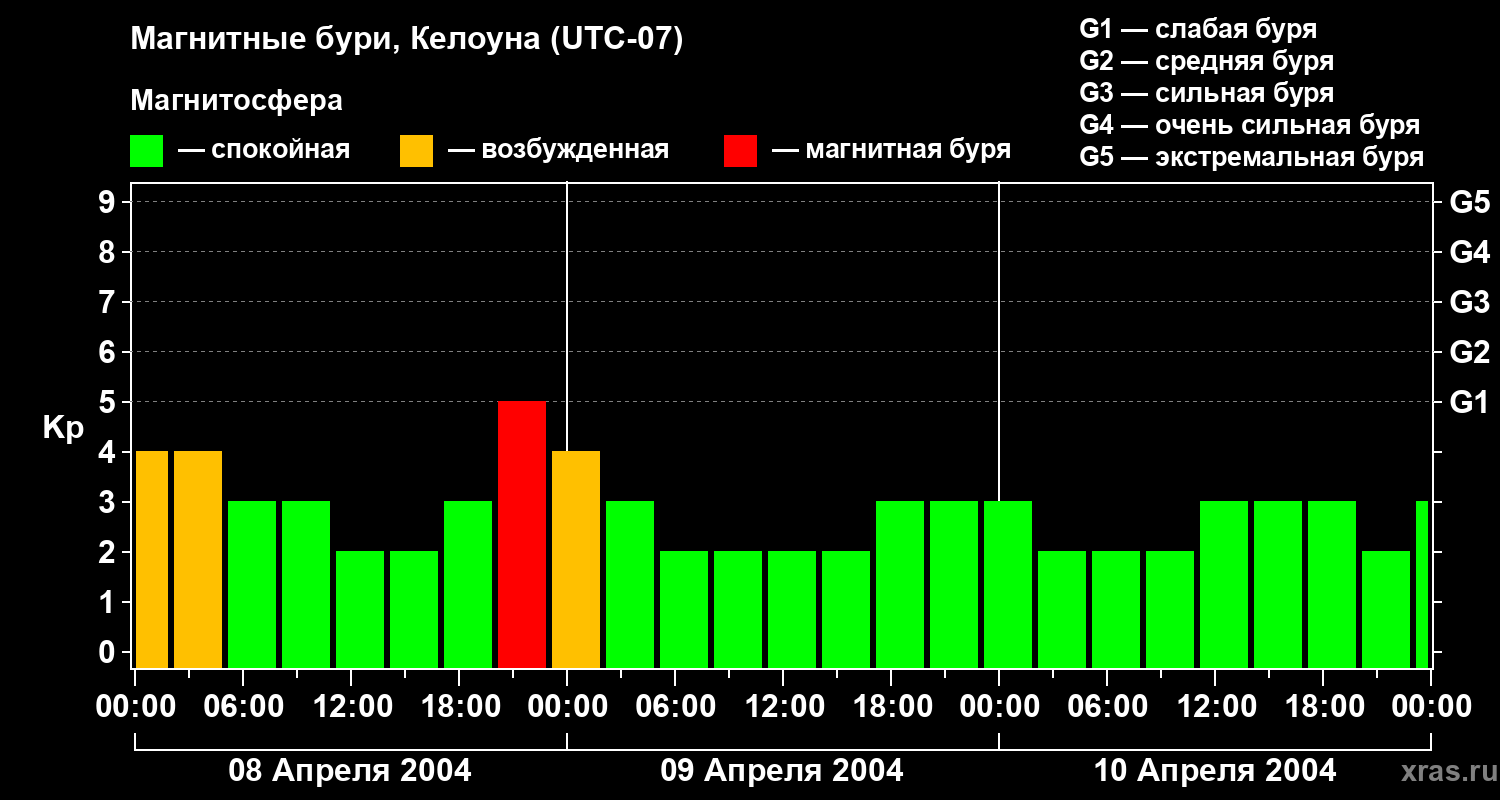 Магнитные бури в Келоуне — 10 апреля 2004 года