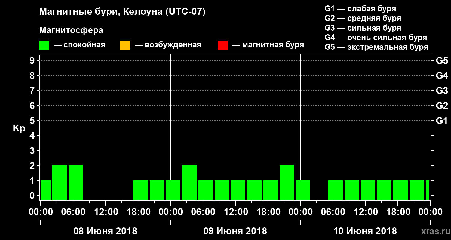 Магнитные бури в Келоуне 10 июня 2018 года