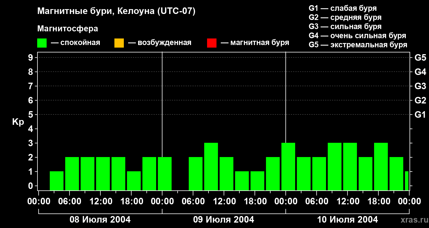 Магнитные бури в Келоуне — 10 июля 2004 года