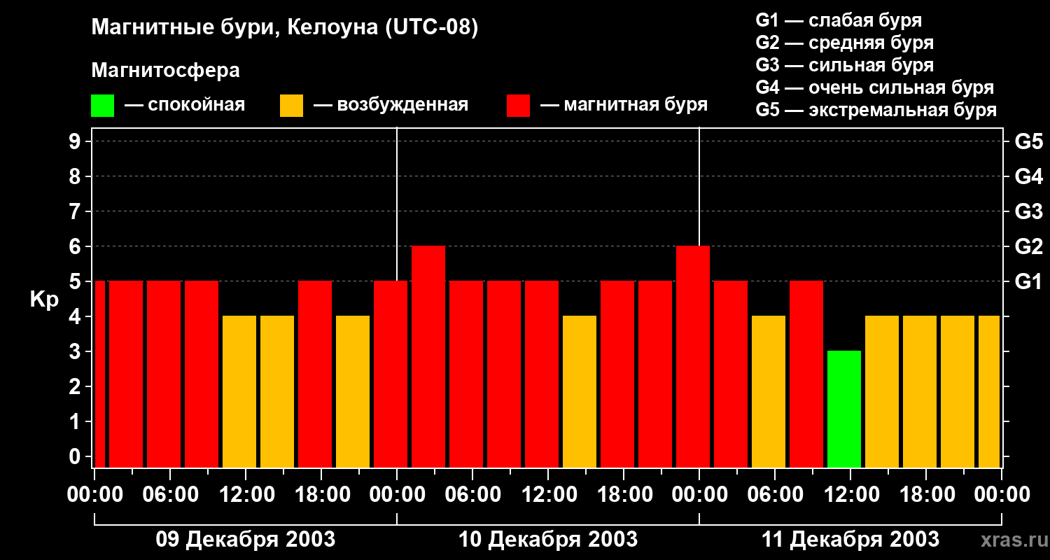 Магнитные бури в Келоуне — 11 декабря 2003 года