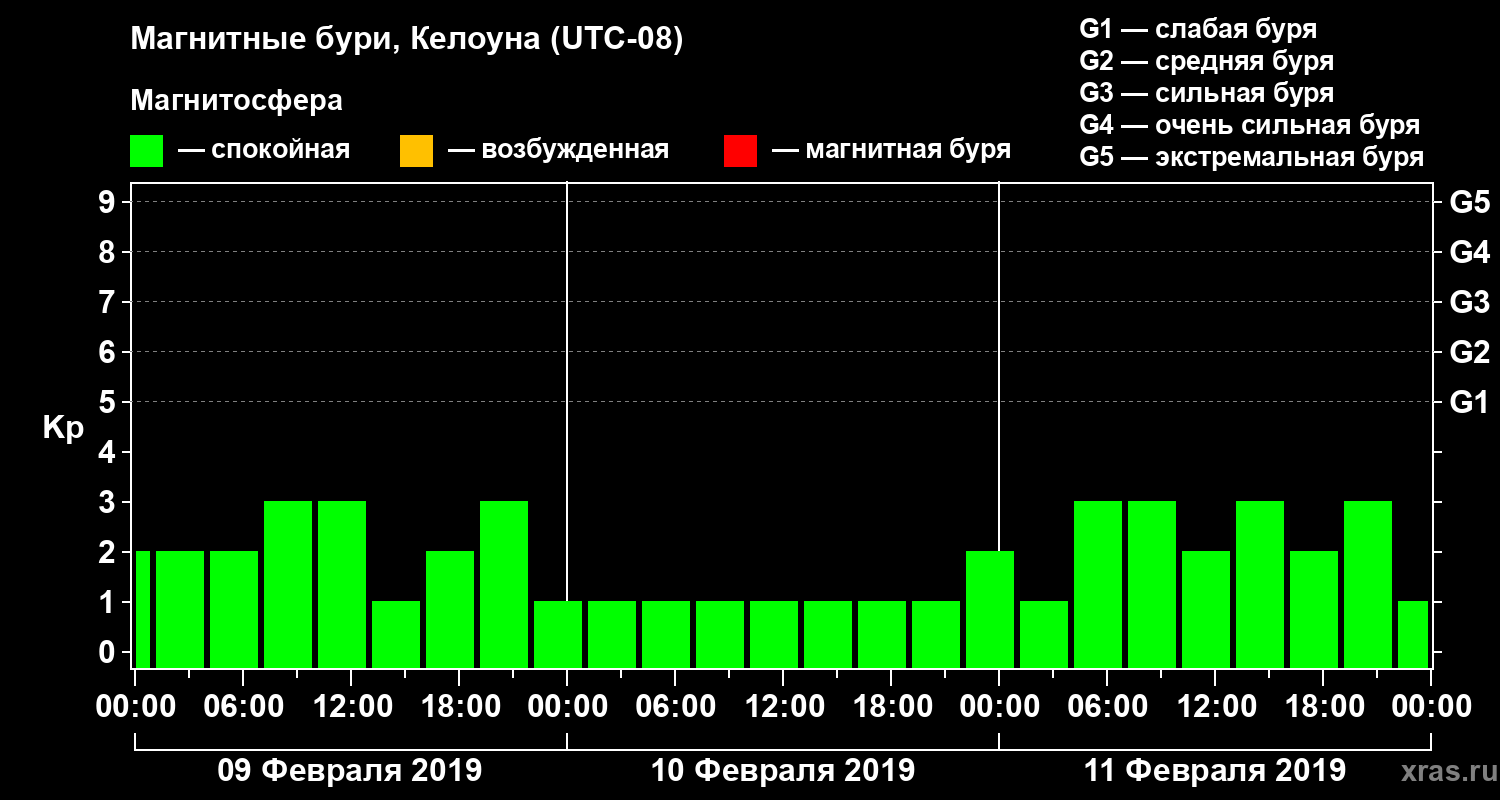 Магнитные бури в Келоуне 11 февраля 2019 года