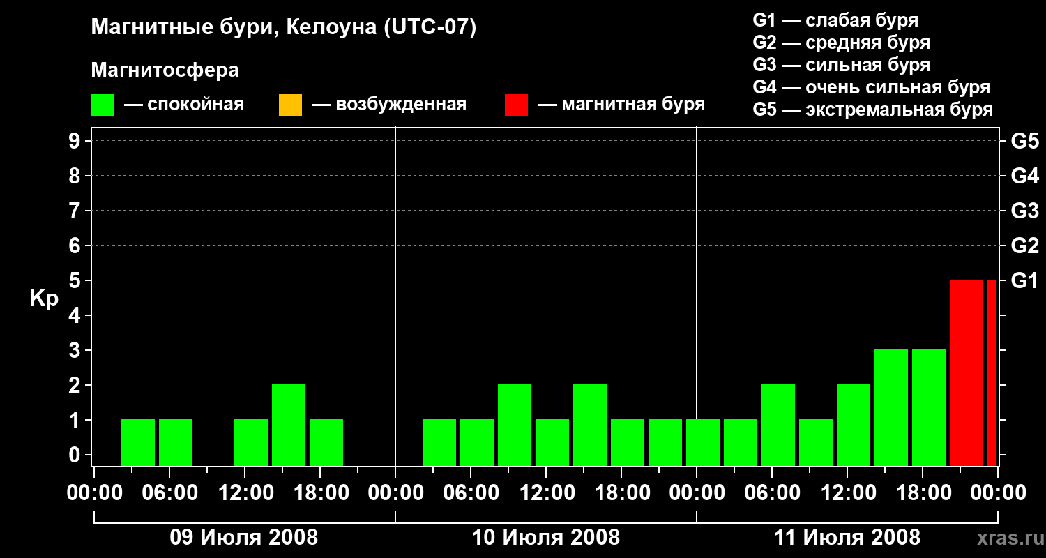 Магнитные бури в Келоуне — 11 июля 2008 года