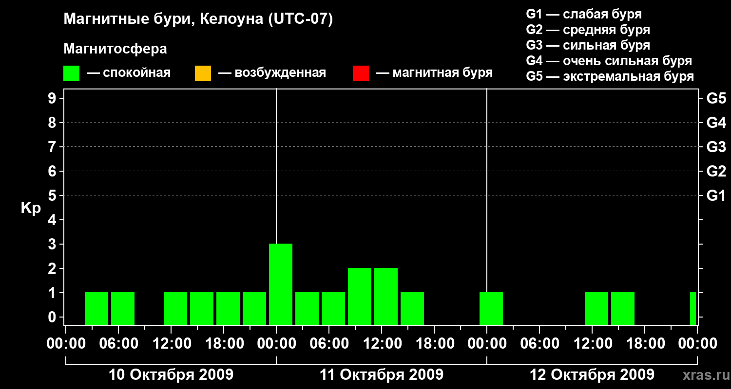 Магнитные бури в Келоуне — 12 октября 2009 года