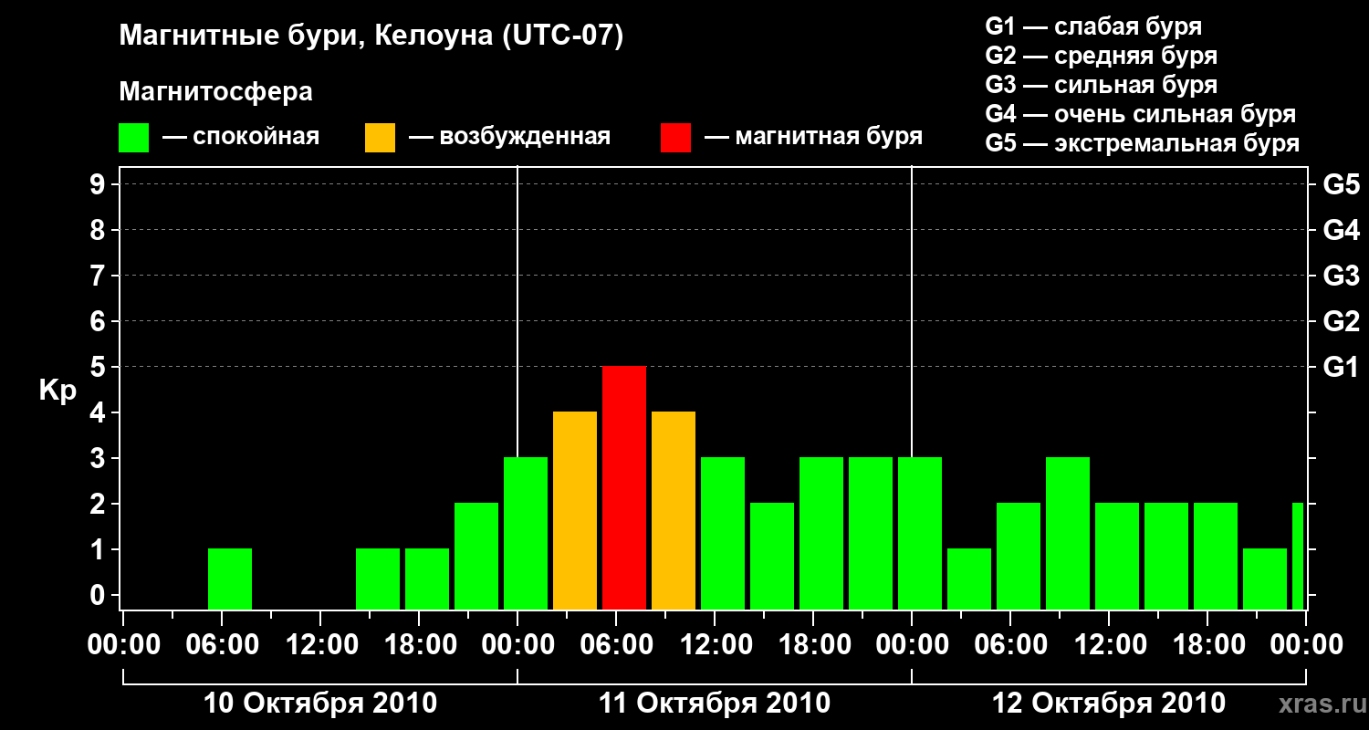 Магнитные бури в Келоуне — 12 октября 2010 года