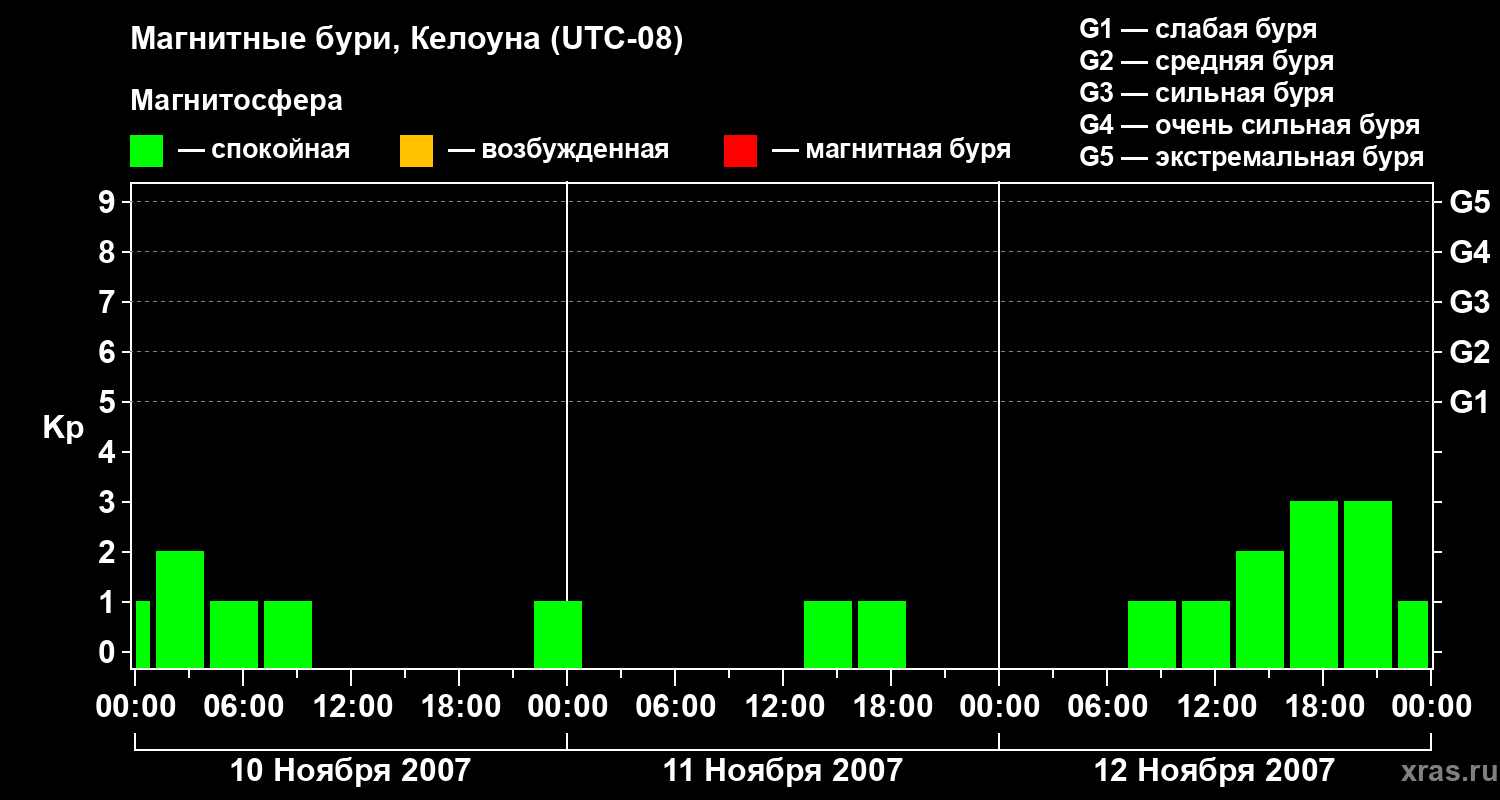 Магнитные бури в Келоуне 12 ноября 2007 года