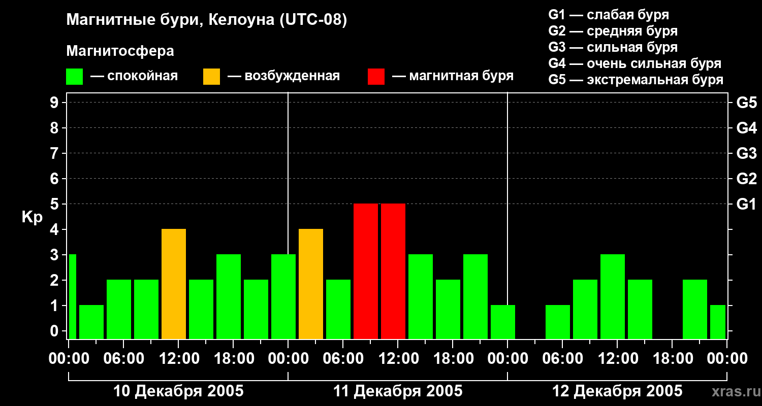 Магнитные бури в Келоуне — 12 декабря 2005 года