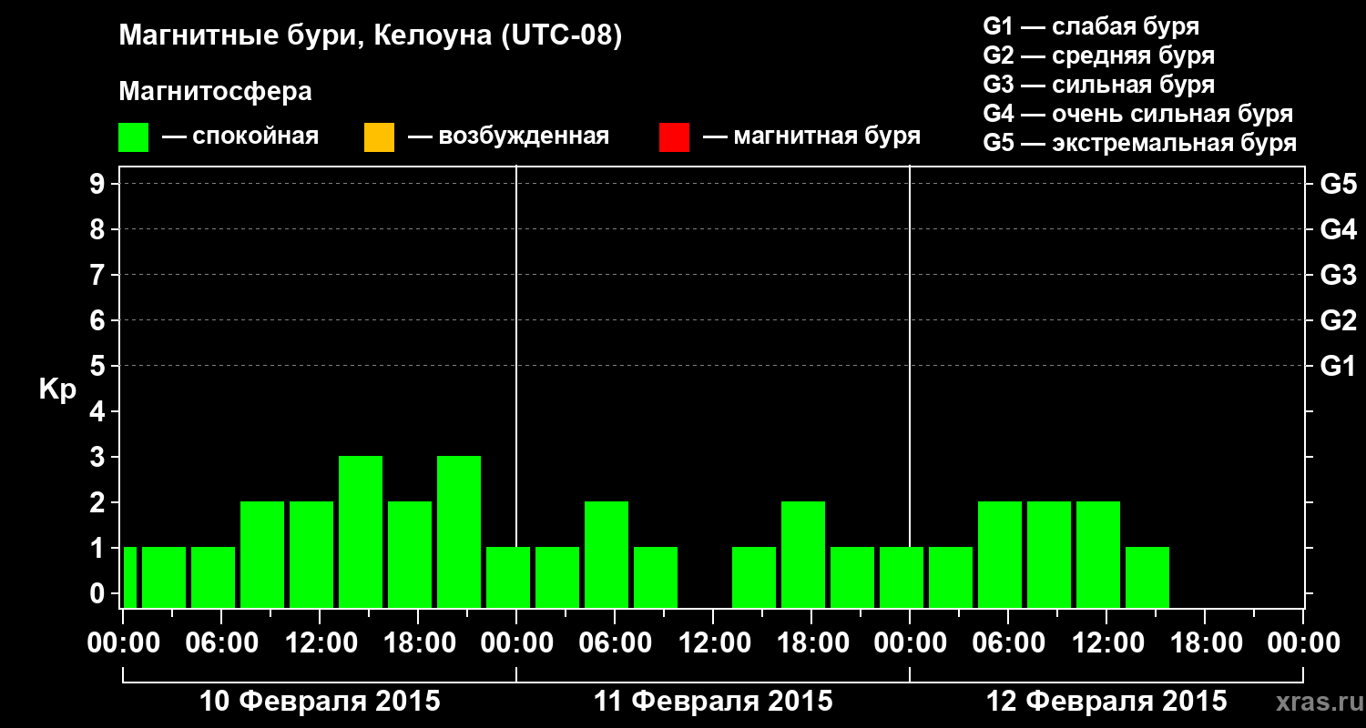 Магнитные бури в Келоуне 12 февраля 2015 года