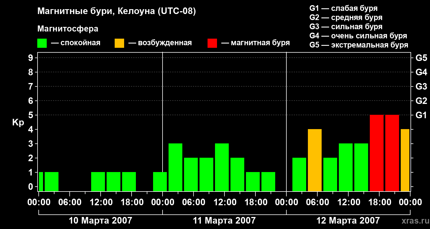 Магнитные бури в Келоуне — 12 марта 2007 года