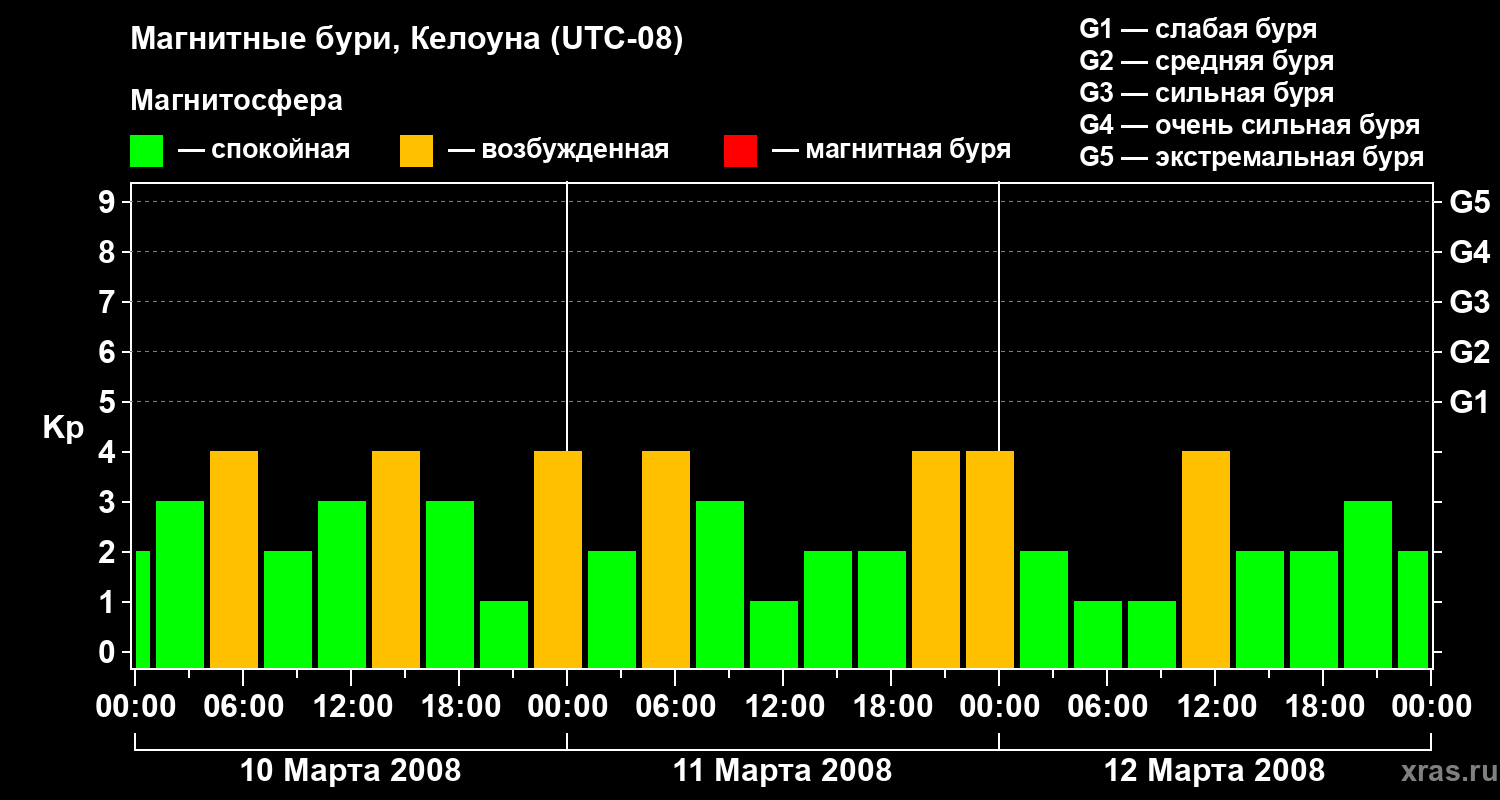 Магнитные бури в Келоуне — 12 марта 2008 года