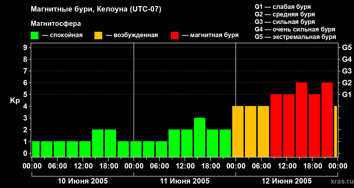 Магнитные бури в Келоуне — 12 июня 2005 года