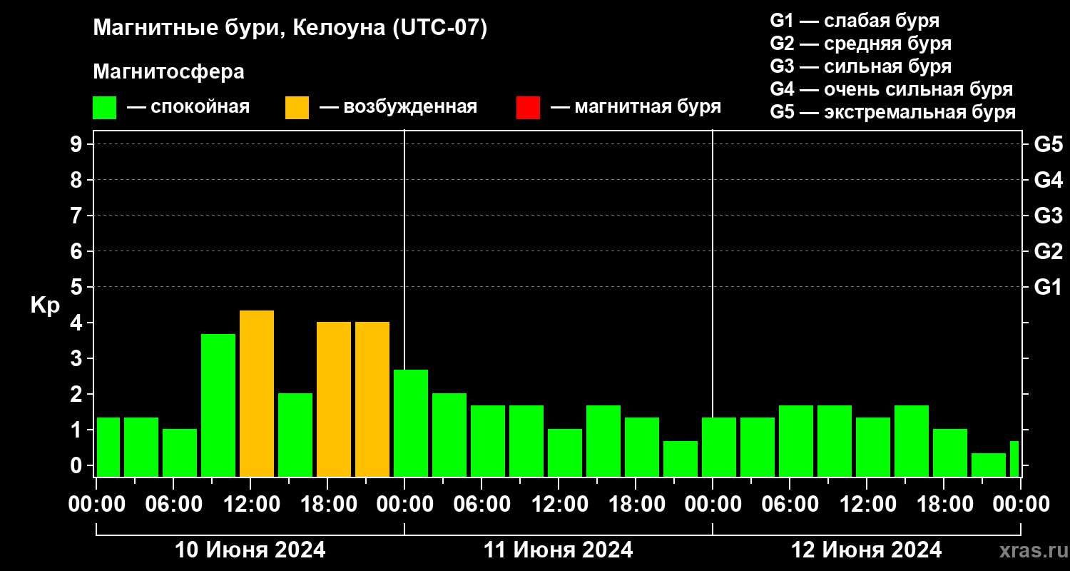 Магнитные бури в Келоуне — 12 июня 2024 года