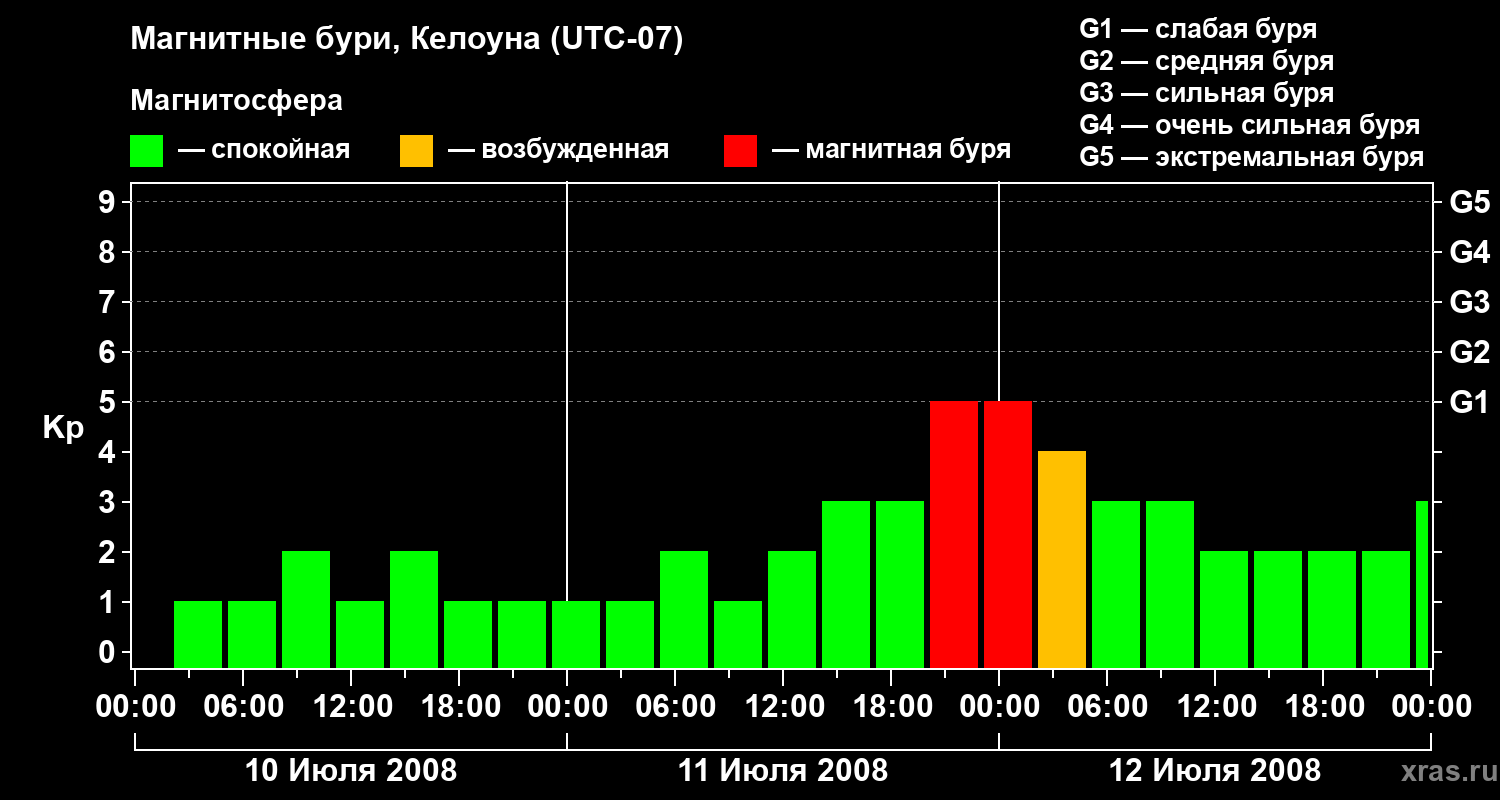 Магнитные бури в Келоуне — 12 июля 2008 года
