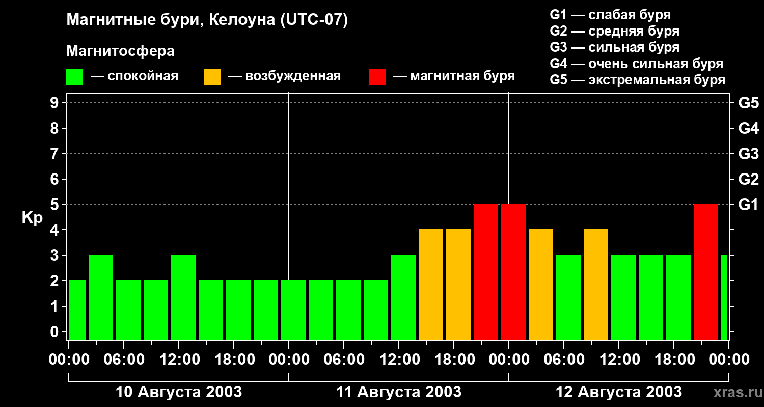 Магнитные бури в Келоуне — 12 августа 2003 года