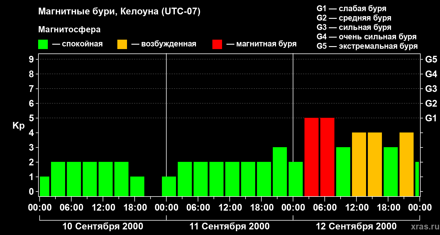 Магнитные бури в Келоуне 12 сентября 2000 года
