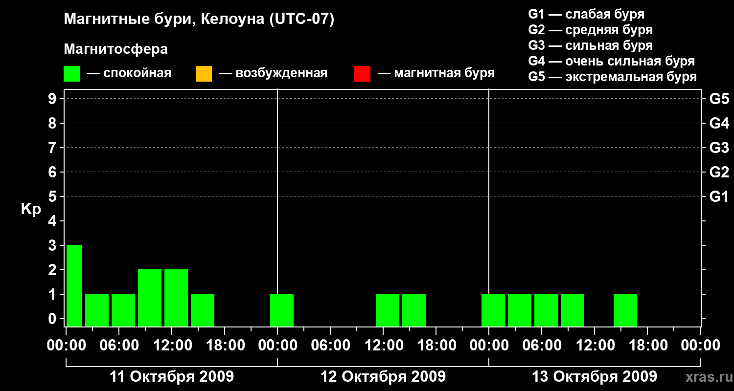 Магнитные бури в Келоуне — 13 октября 2009 года