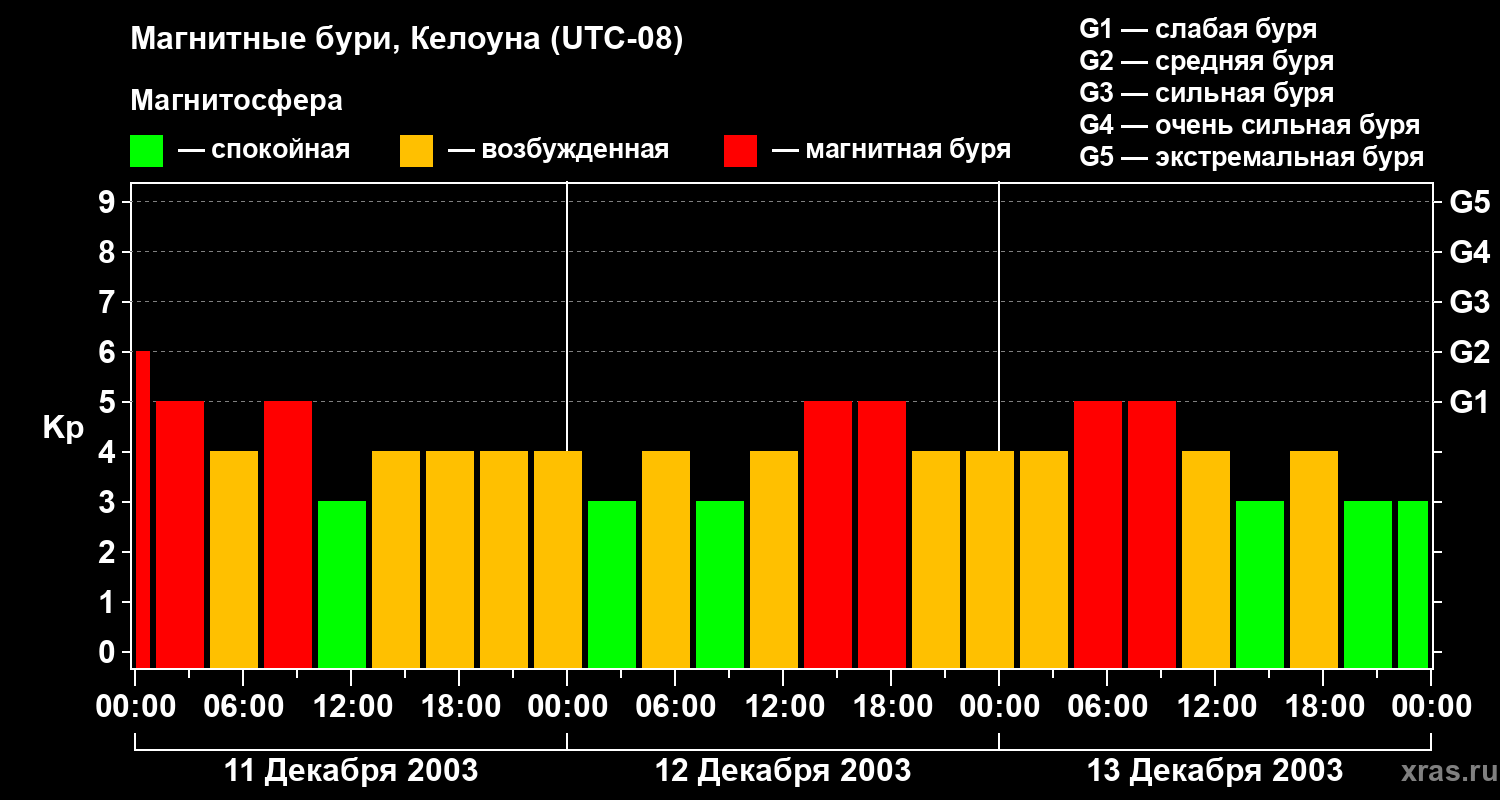 Магнитные бури в Келоуне — 13 декабря 2003 года