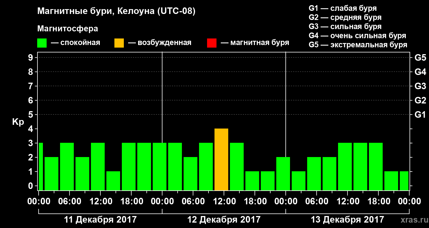 Магнитные бури в Келоуне — 13 декабря 2017 года