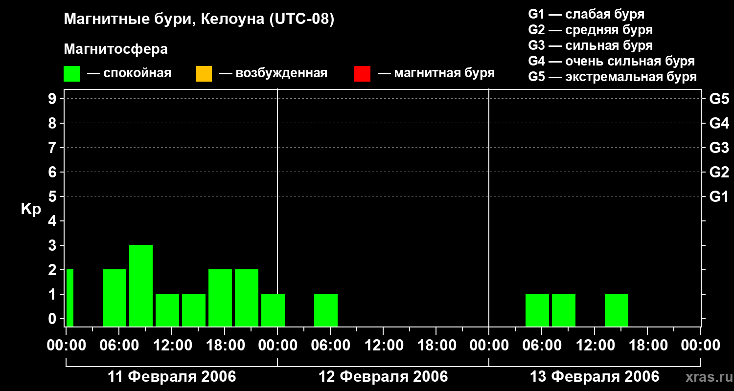 Магнитные бури в Келоуне — 13 февраля 2006 года