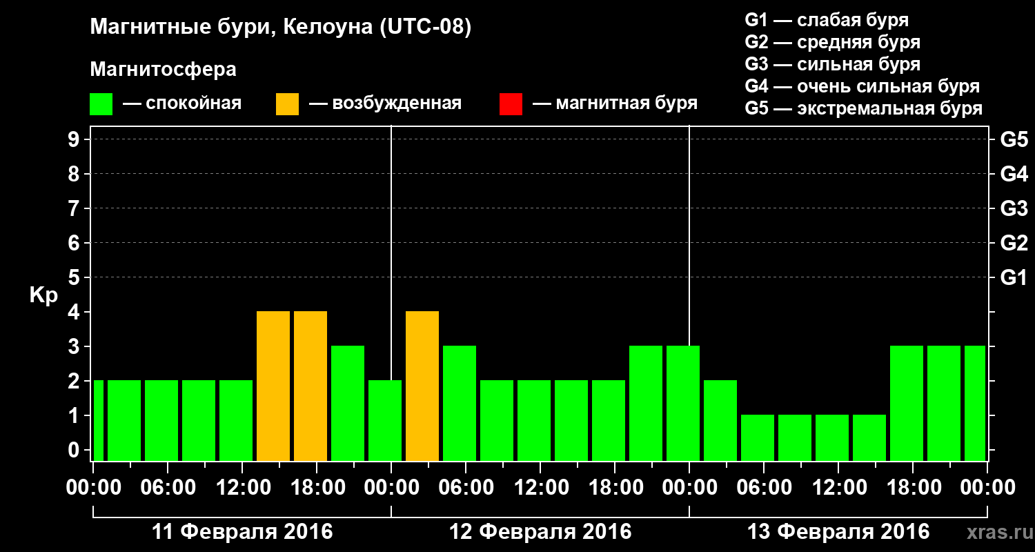 Магнитные бури в Келоуне — 13 февраля 2016 года