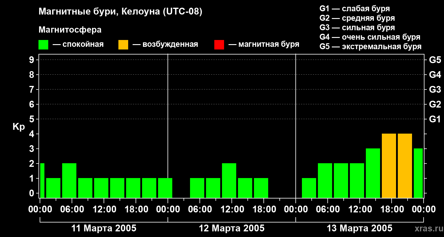 Магнитные бури в Келоуне — 13 марта 2005 года