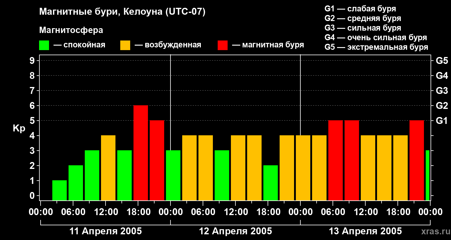 Магнитные бури в Келоуне — 13 апреля 2005 года