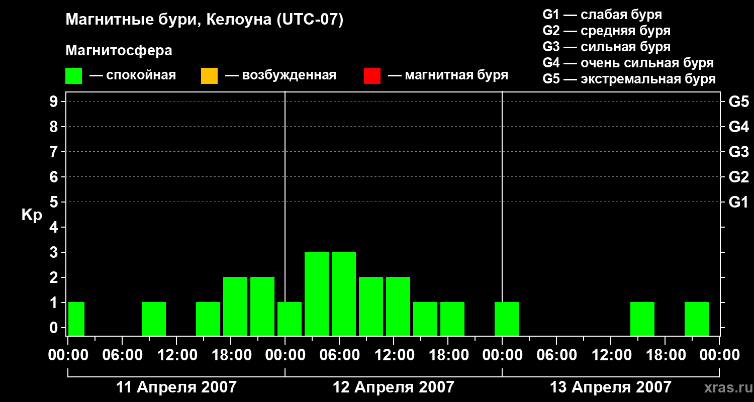 Магнитные бури в Келоуне — 13 апреля 2007 года