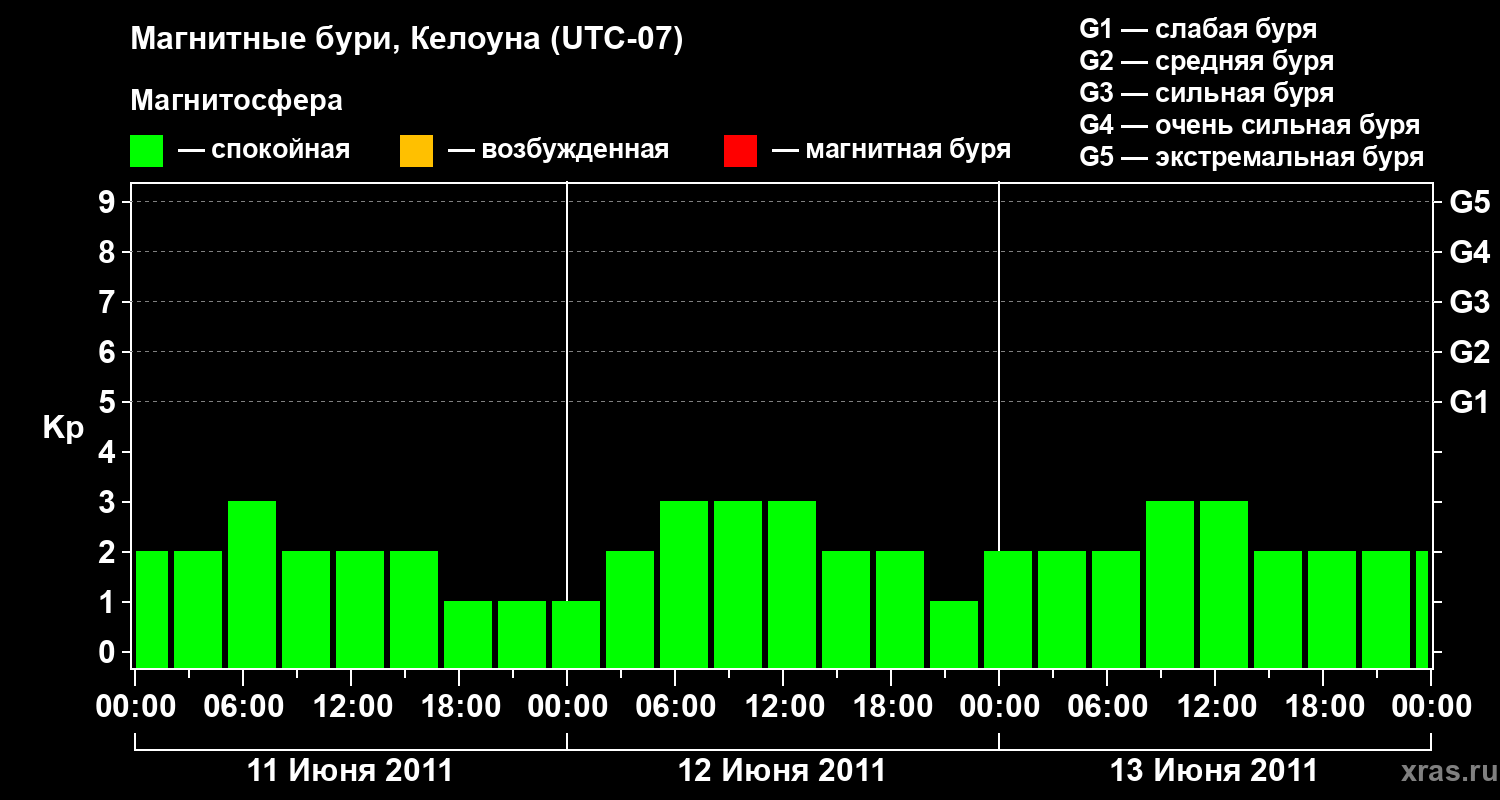Магнитные бури в Келоуне — 13 июня 2011 года