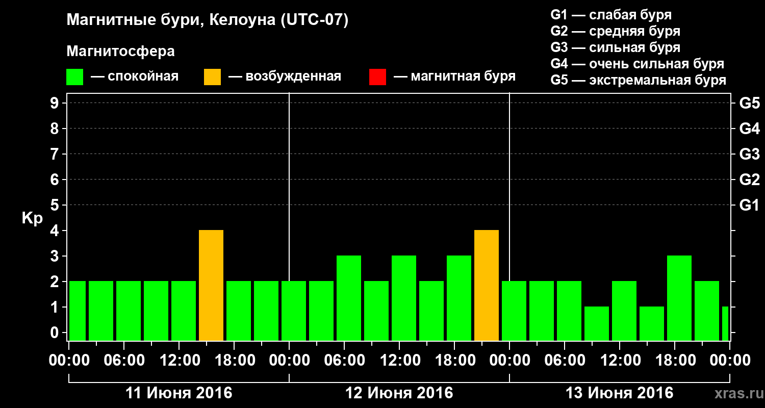 Магнитные бури в Келоуне — 13 июня 2016 года