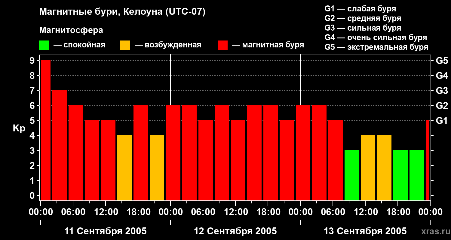 Магнитные бури в Келоуне 13 сентября 2005 года