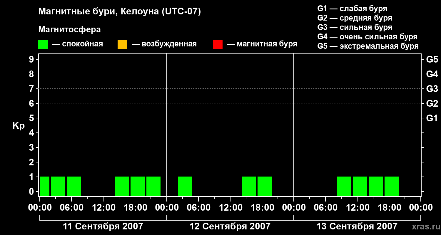 Магнитные бури в Келоуне 13 сентября 2007 года