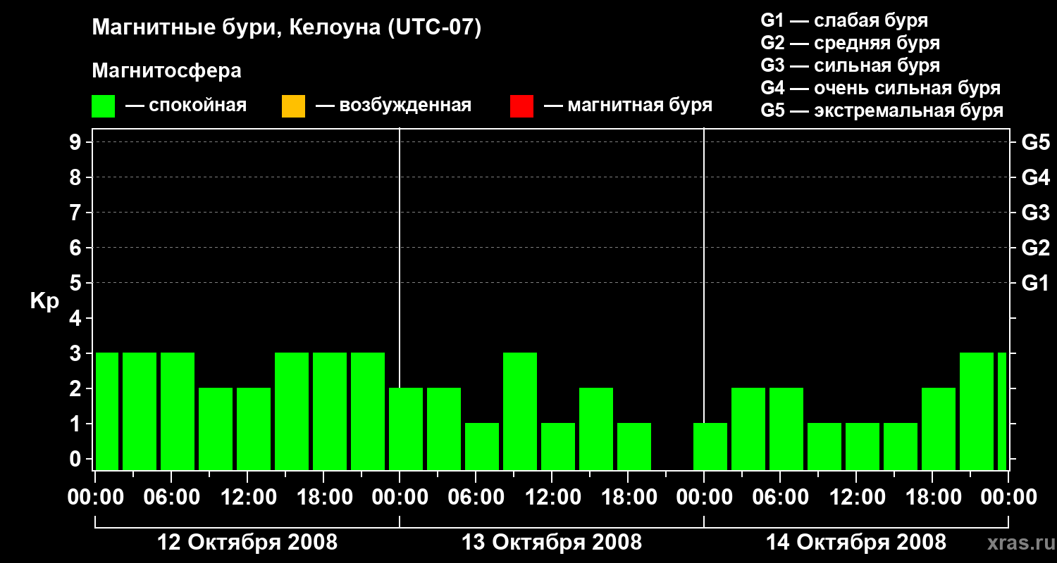Магнитные бури в Келоуне 14 октября 2008 года