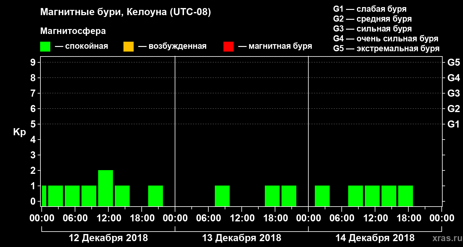 Магнитные бури в Келоуне — 14 декабря 2018 года