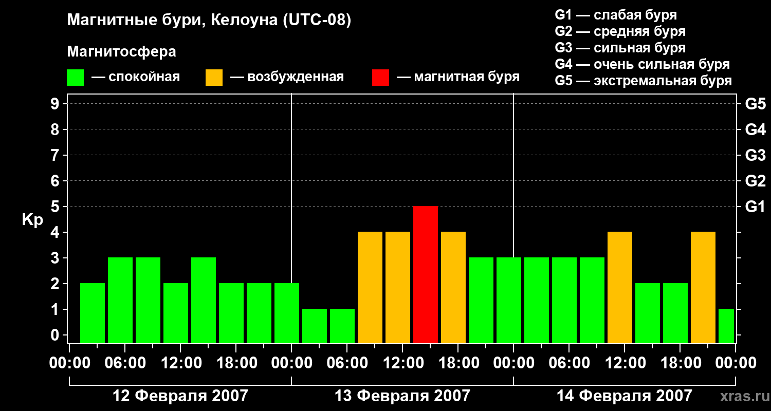Магнитные бури в Келоуне 14 февраля 2007 года