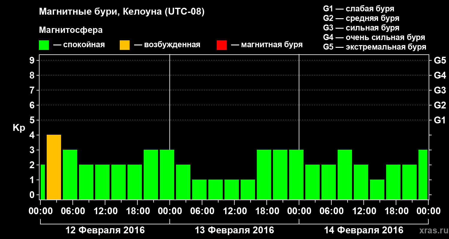 Магнитные бури в Келоуне — 14 февраля 2016 года