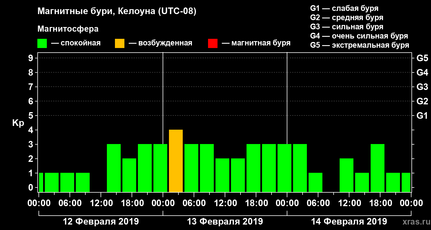 Магнитные бури в Келоуне 14 февраля 2019 года