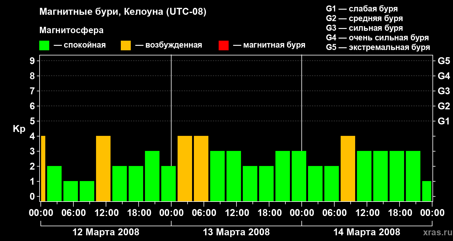 Магнитные бури в Келоуне — 14 марта 2008 года