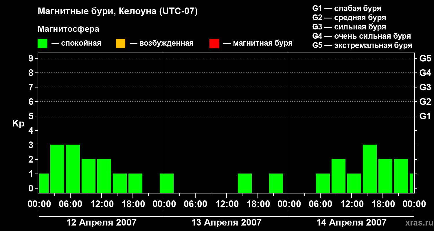 Магнитные бури в Келоуне — 14 апреля 2007 года
