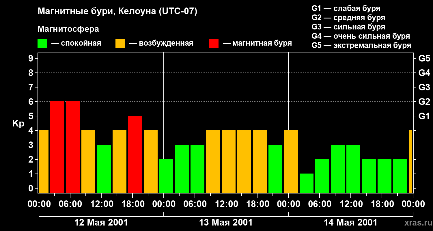 Магнитные бури в Келоуне — 14 мая 2001 года