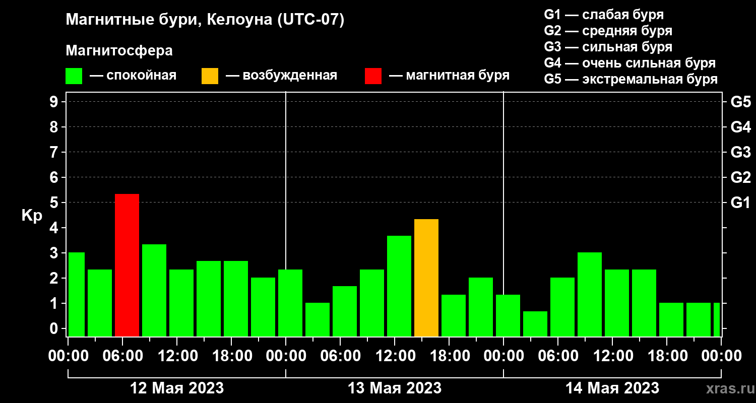 Магнитные бури в Келоуне — 14 мая 2023 года