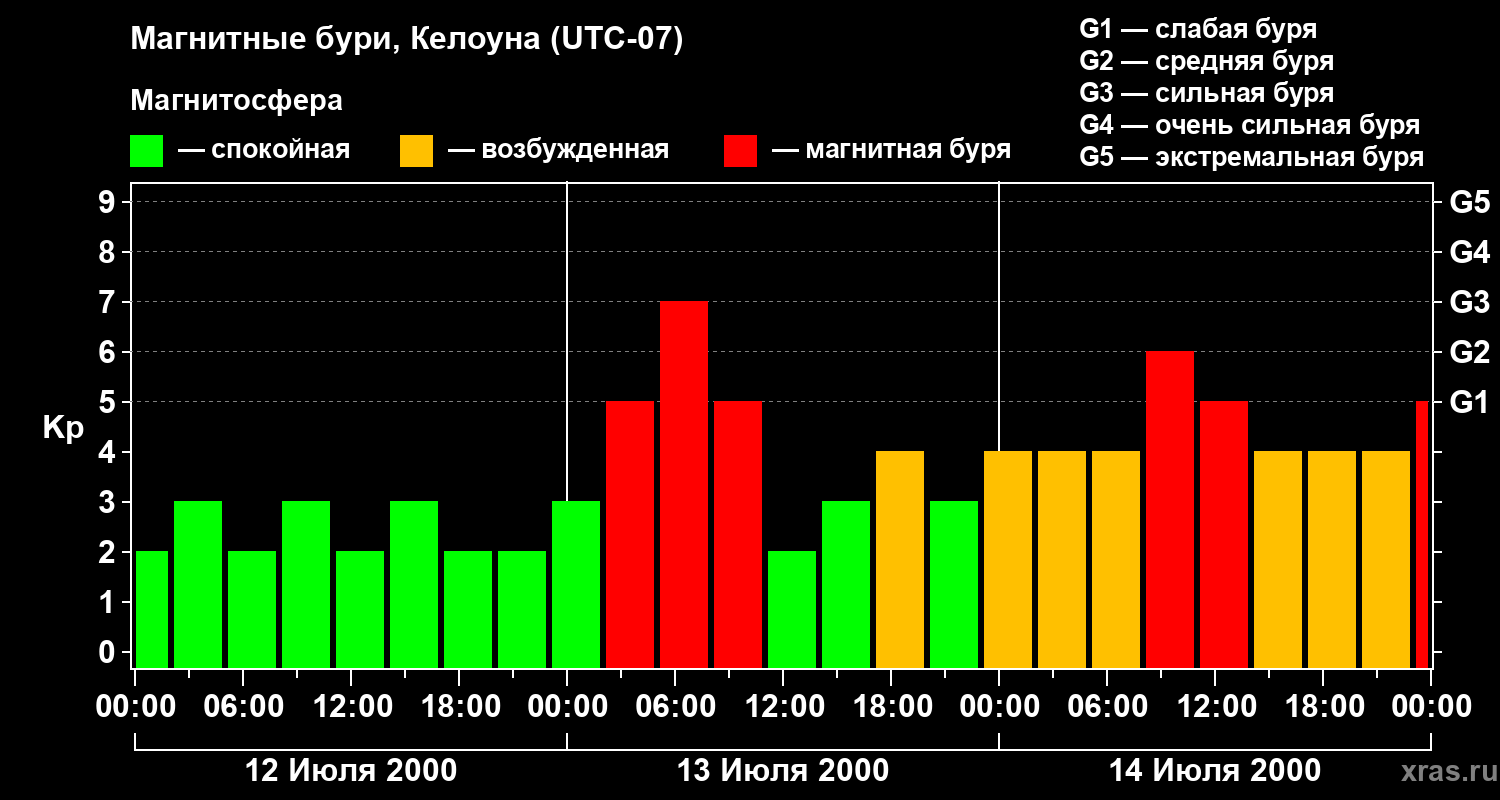 Магнитные бури в Келоуне — 14 июля 2000 года
