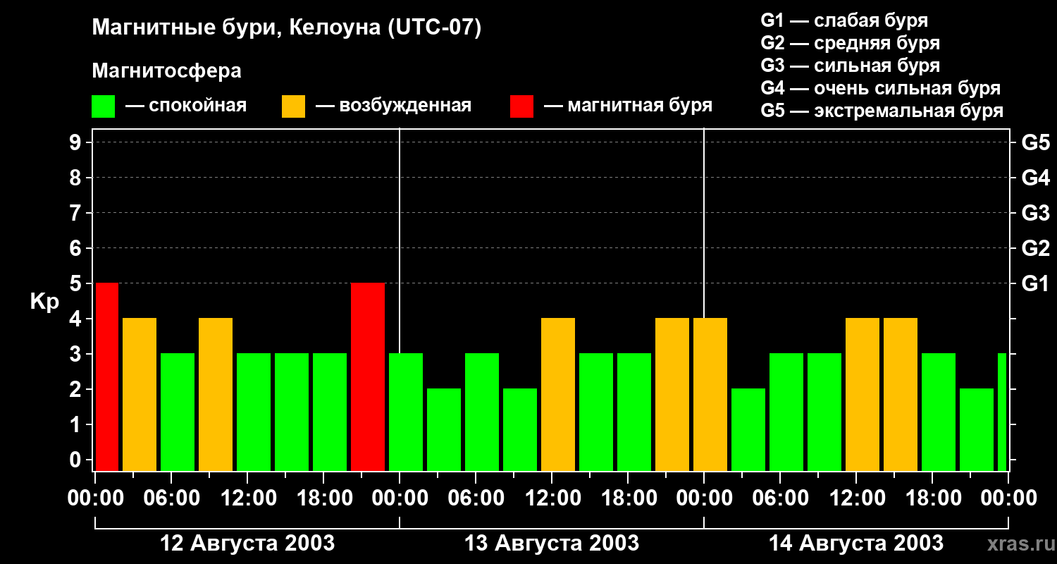 Магнитные бури в Келоуне — 14 августа 2003 года