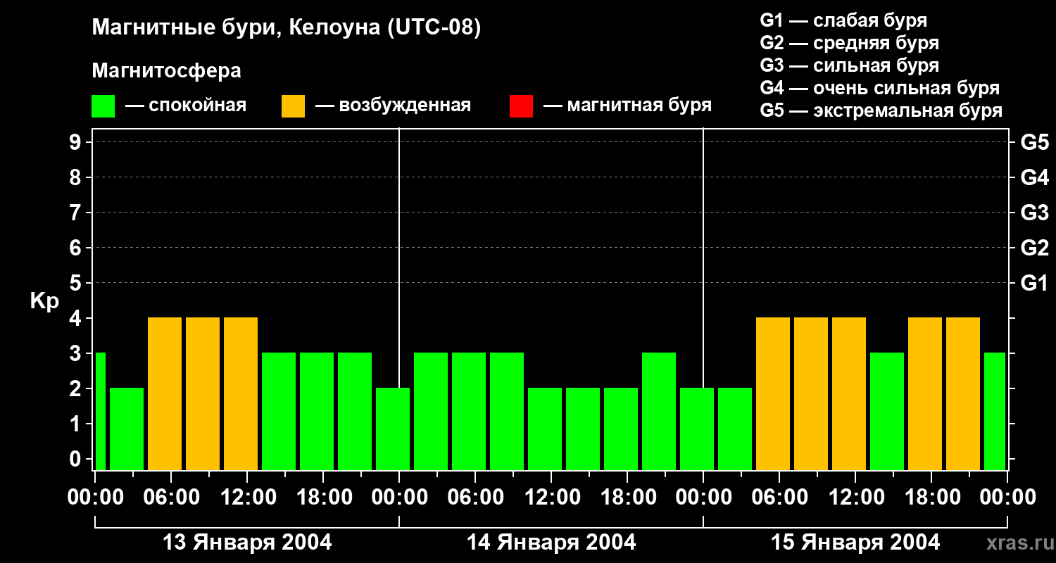 Магнитные бури в Келоуне — 15 января 2004 года